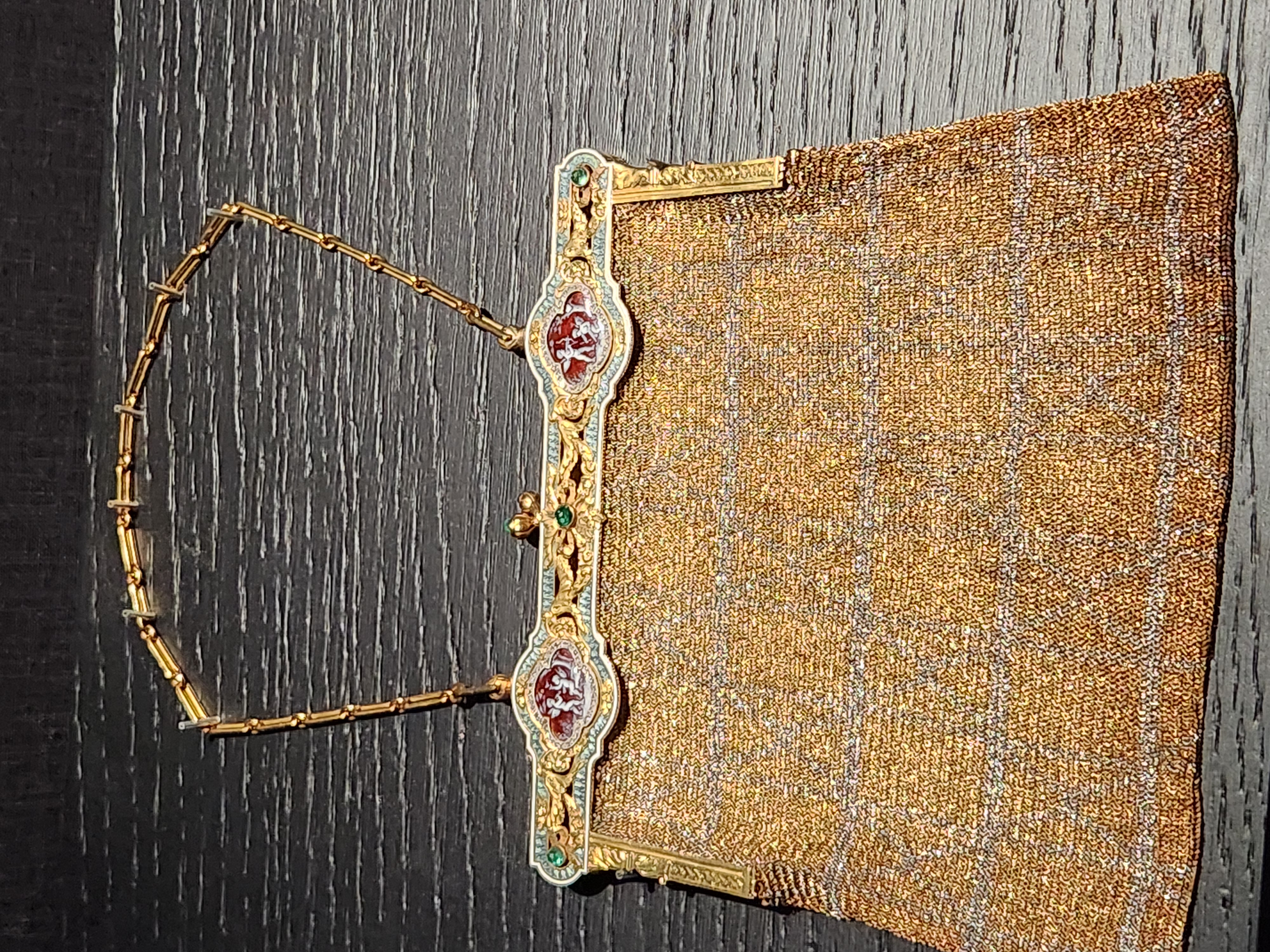 금실로 짜고 에나멜과 보석으로 장식한 핸드백.