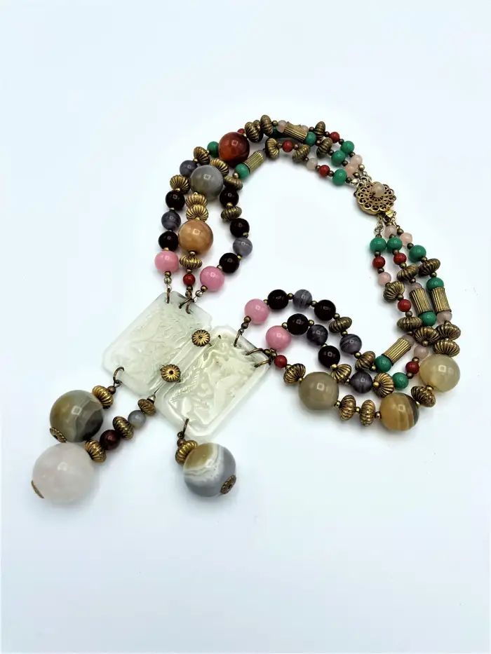 끝에 펜던트나 술 같은 게 달린 목걸이 양식을 지칭합니다.