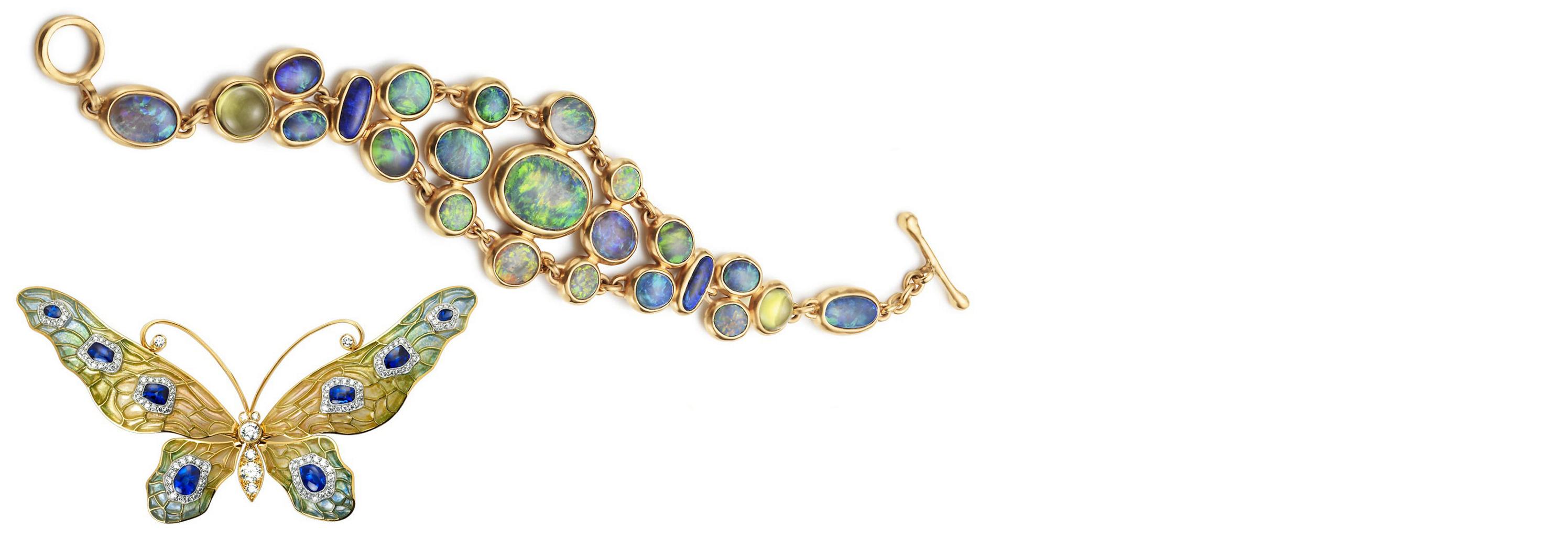 루이스 콤포트 티파니는 부사장인 프레데릭 쿤즈가 찾아낸 투어멀린, 사파이어, 토파즈, 가넷 등 유색 보석을 사용해 주얼리를 디자인하였습니다.