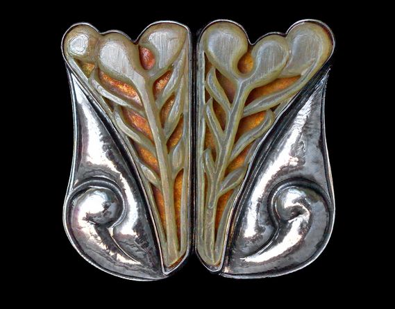뿔과 자개, 은을 사용한 메뚜기 허리 걸쇠.