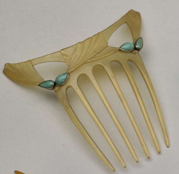 터키석과 뿔, 은을 사용한 장식용 빗.