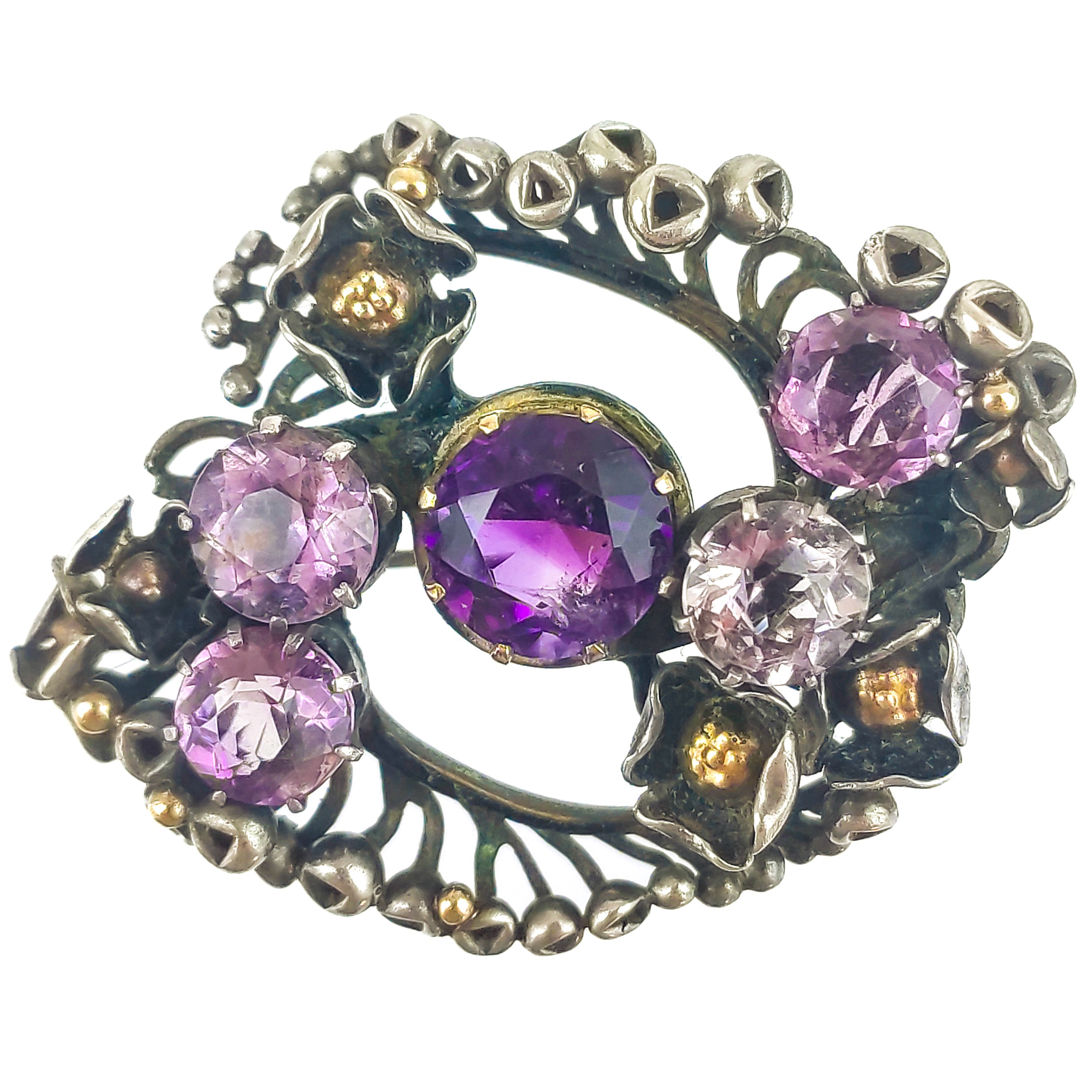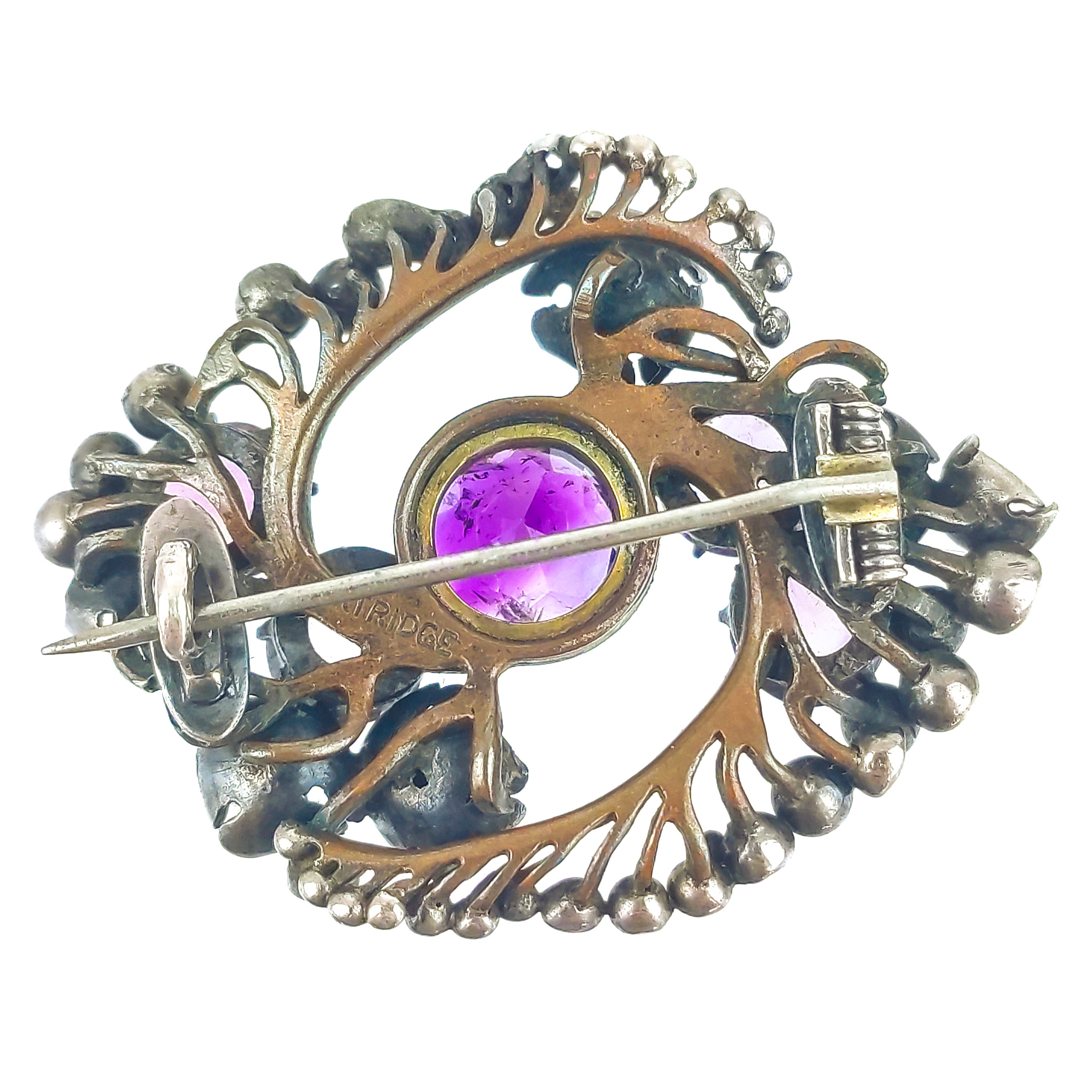 에나멜에 보라색 사파이어, 녹색 가넷을 사용한 브로치.