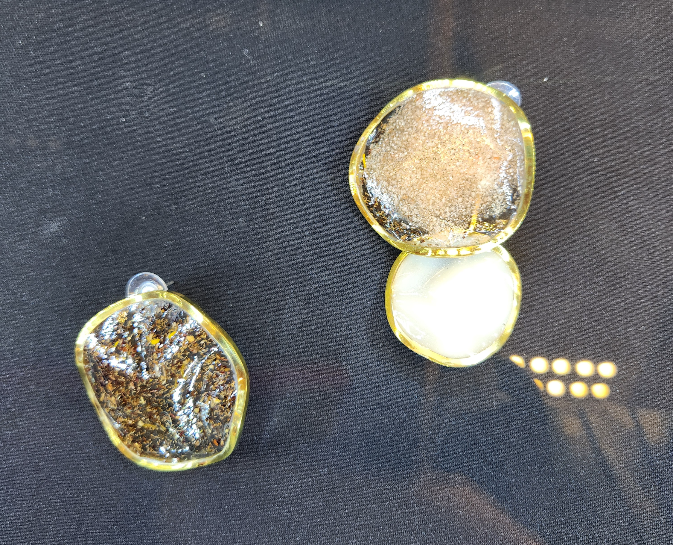 셀로판지 사이에 뭔가 모래 한 줌이나 나무 톱밥 같은 걸 넣고 굳힌 것처럼 보였습니다.
