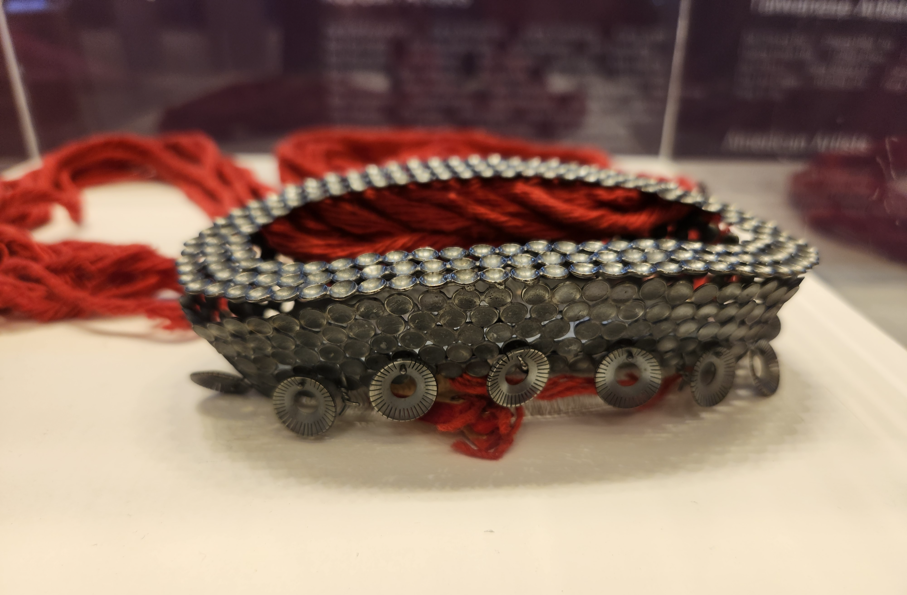 사진으로 보니 금판에 십자 형태로 구멍을 뚫은 뒤에 종이를 접어서 부채를 만들듯이 교차로 접어서 만든 거였군요.