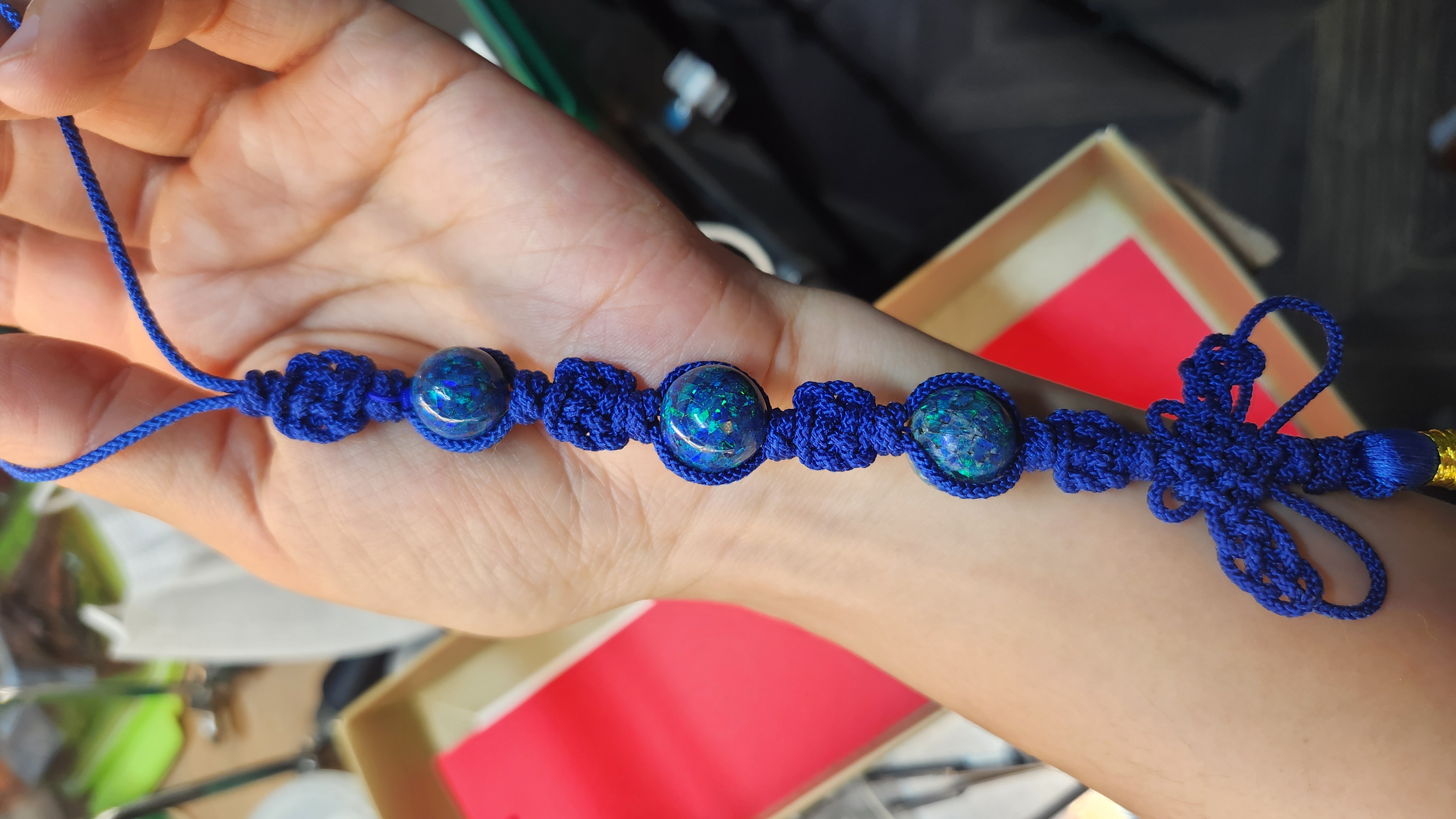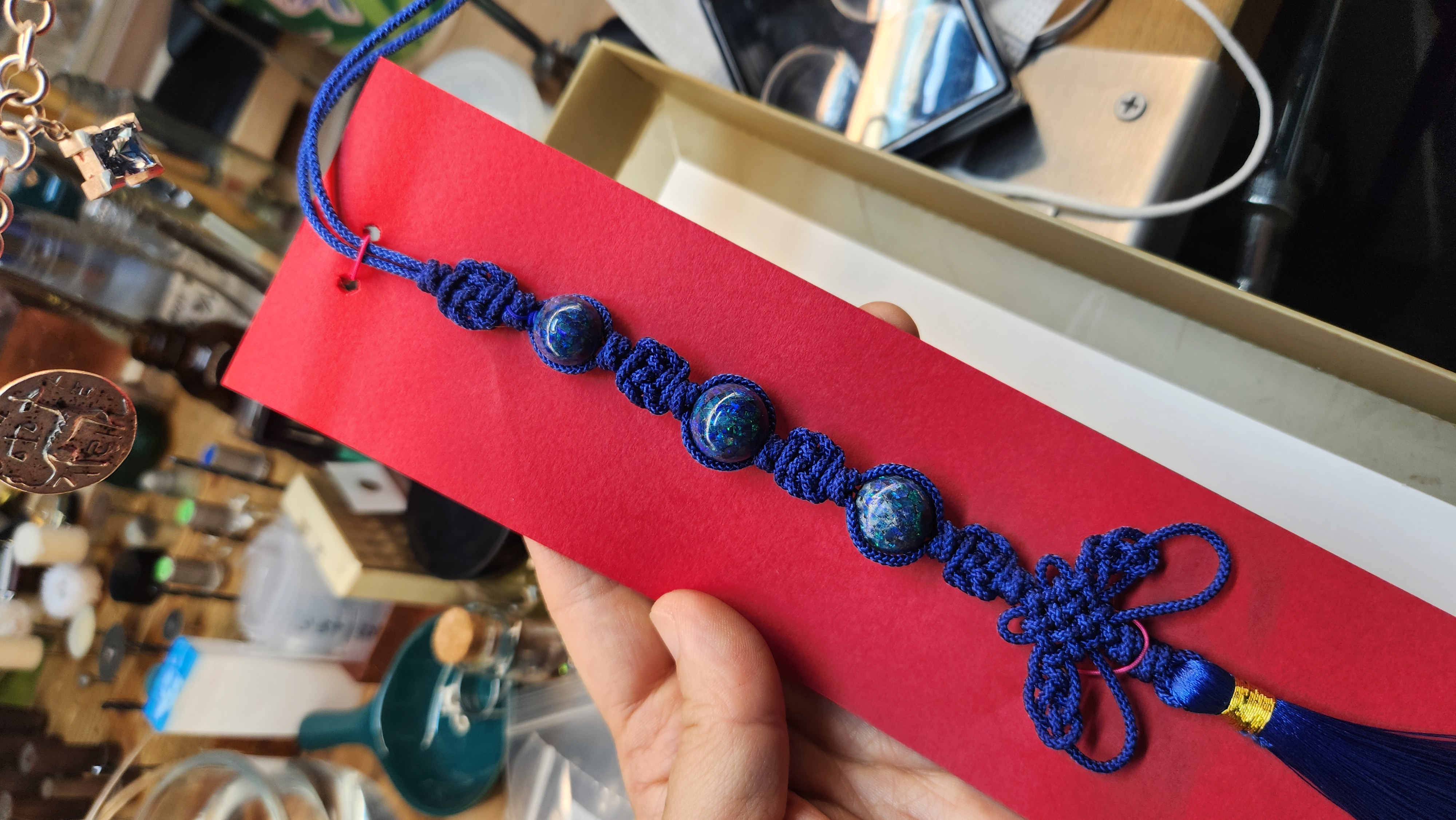 호주 오팔을 사용한 모자이크 오팔 비드와 푸른 끈과 전통매듭이 더 없이 잘 어울립니다.