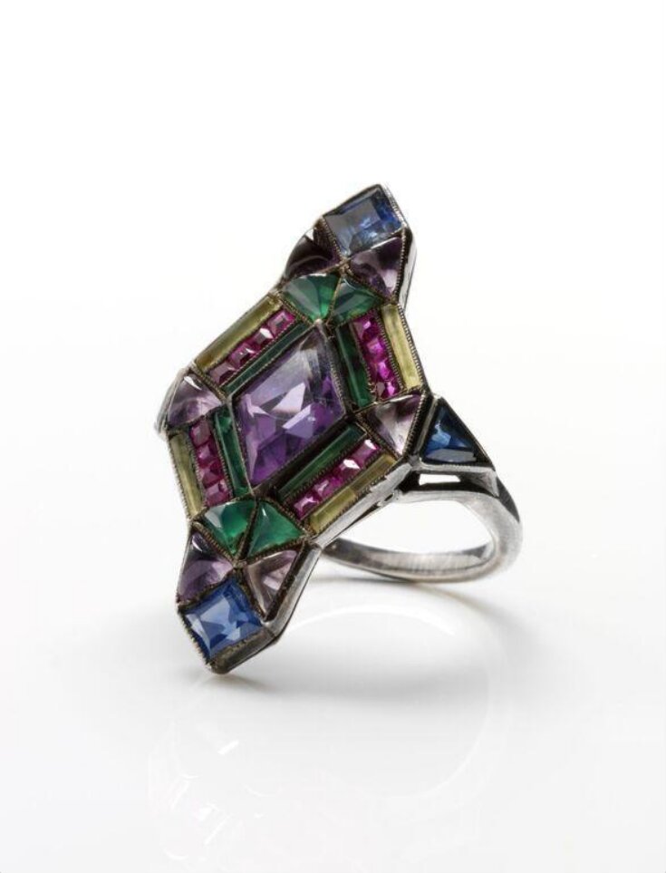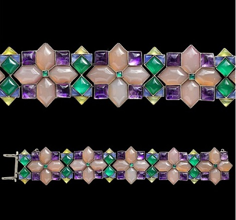 특히나 조각 보자기를 만들듯이 유색 보석들을 짜맞춰 배치하는 디자인으로 유명했습니다.