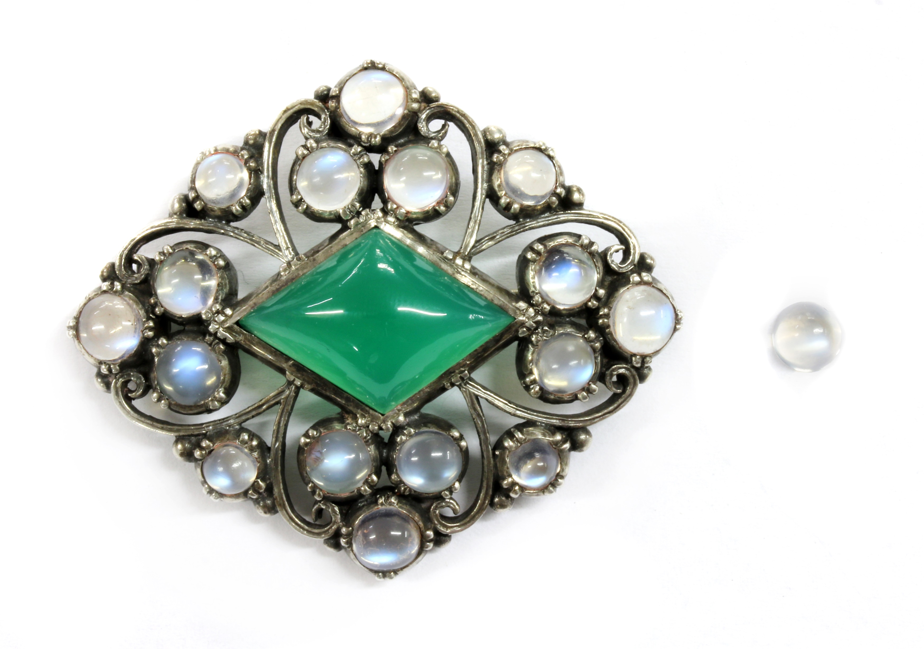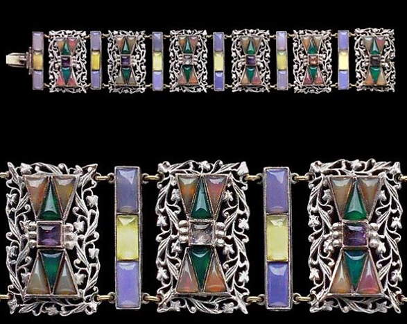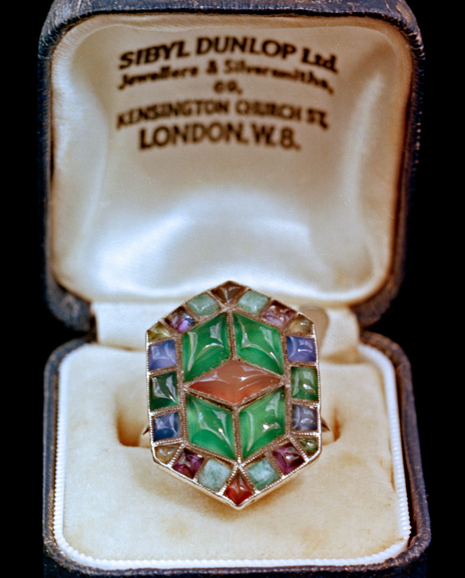 시빌 던롭은 미술 공예 운동의 철학에 걸맞게 칼세도니, 문스톤, 자수정, 아게이트, 오팔 등 준보석들을 많이 활용하였으며