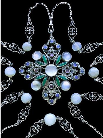 귀걸이에 목걸이...중앙에 있는 건 브로치일까요?