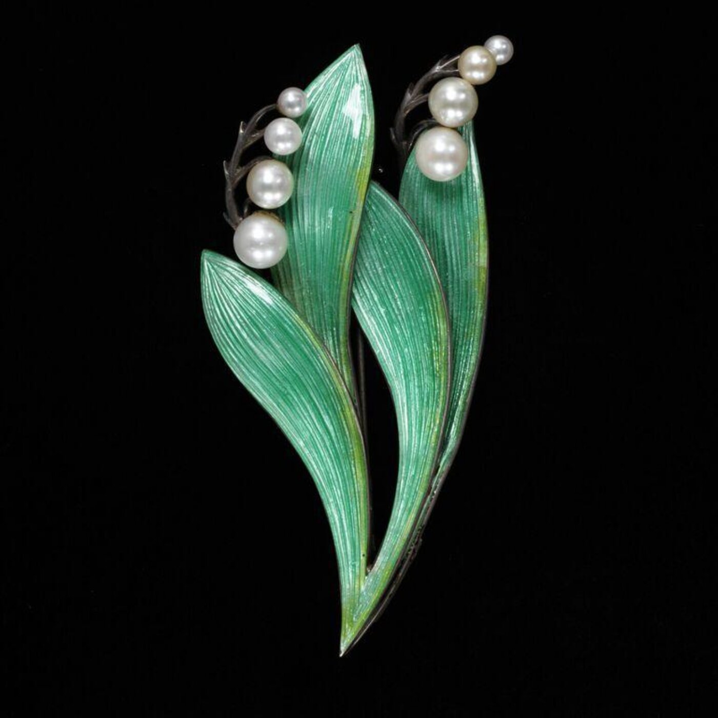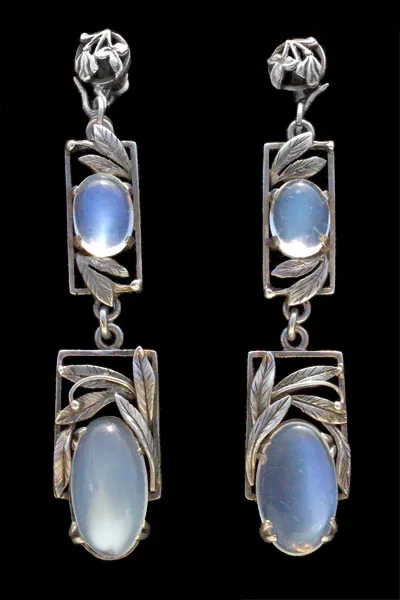 미술 공예 운동을 하던 주얼러답게 문스톤, 진주, 오팔 같은 준보석들과 은을 사용하여 손으로 직접 세공한 섬세한 나뭇잎이 들어간 게 많습니다.