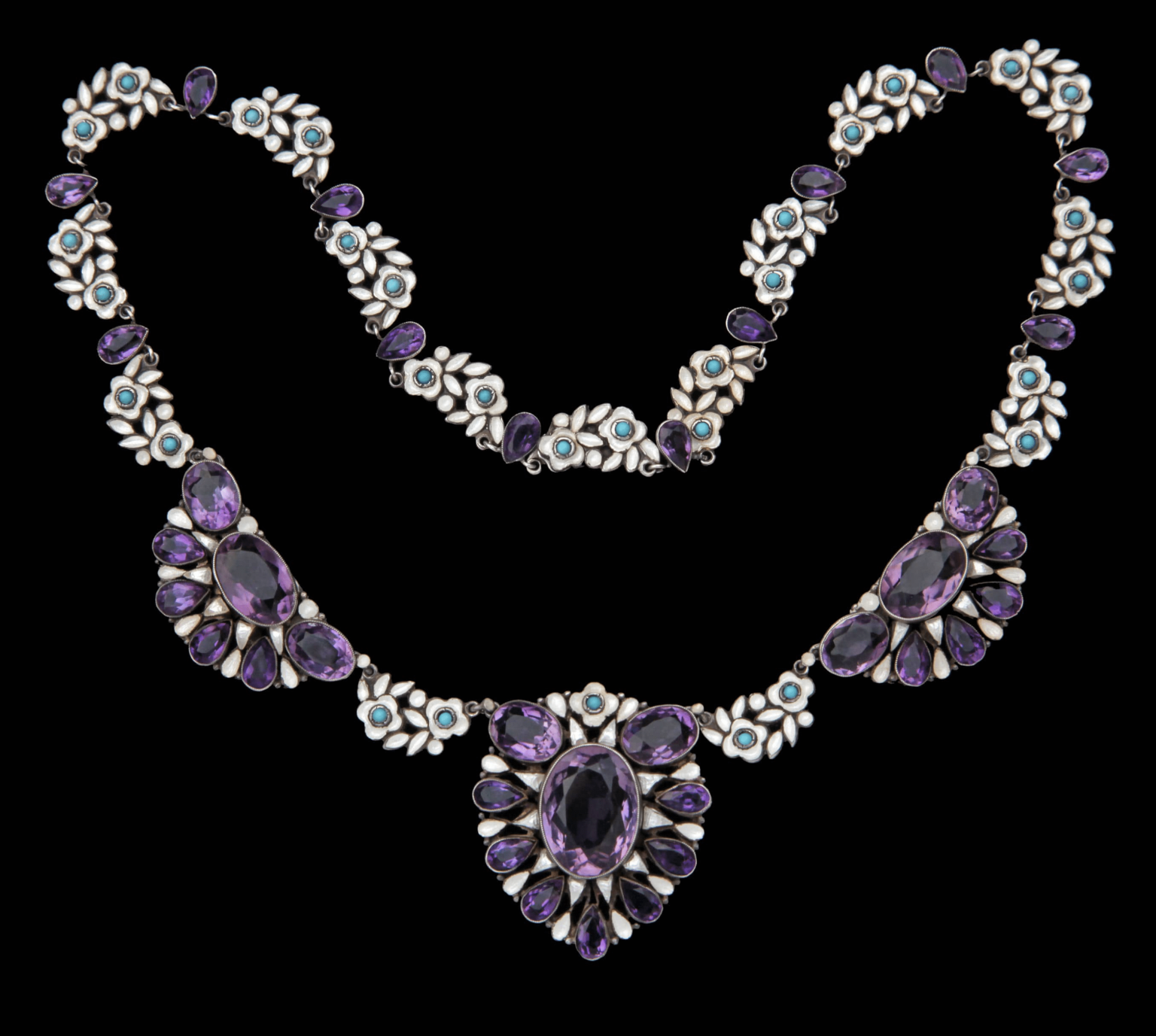3. 목걸이: 은에 녹색 에나멜, 마카사이트.