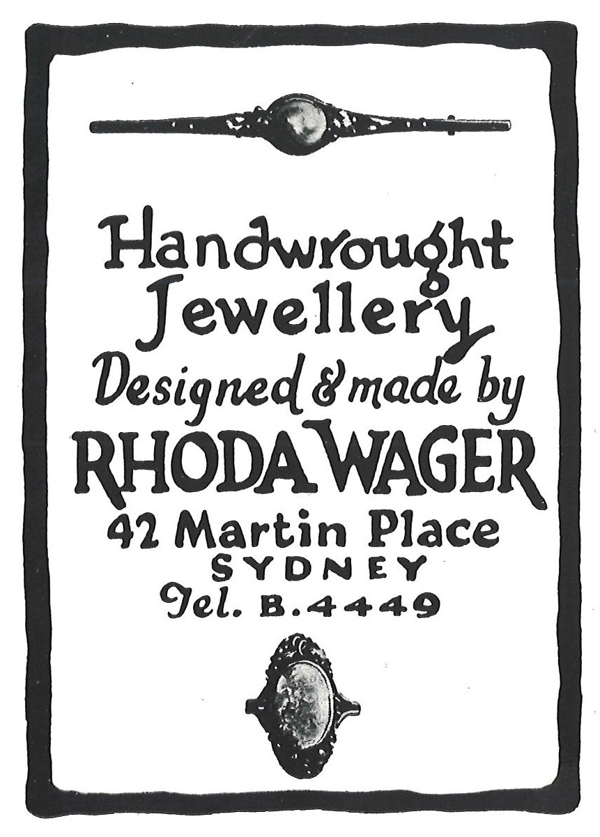 From Wikipedia, the free encyclopedia British jewellery designer (1875–1953) Rhoda Wager (10 March 1875 – 1953) was a British jewellery designer who later settled in Australia. She was born on 10 March 1875 in Mile End, London, one of five children of
