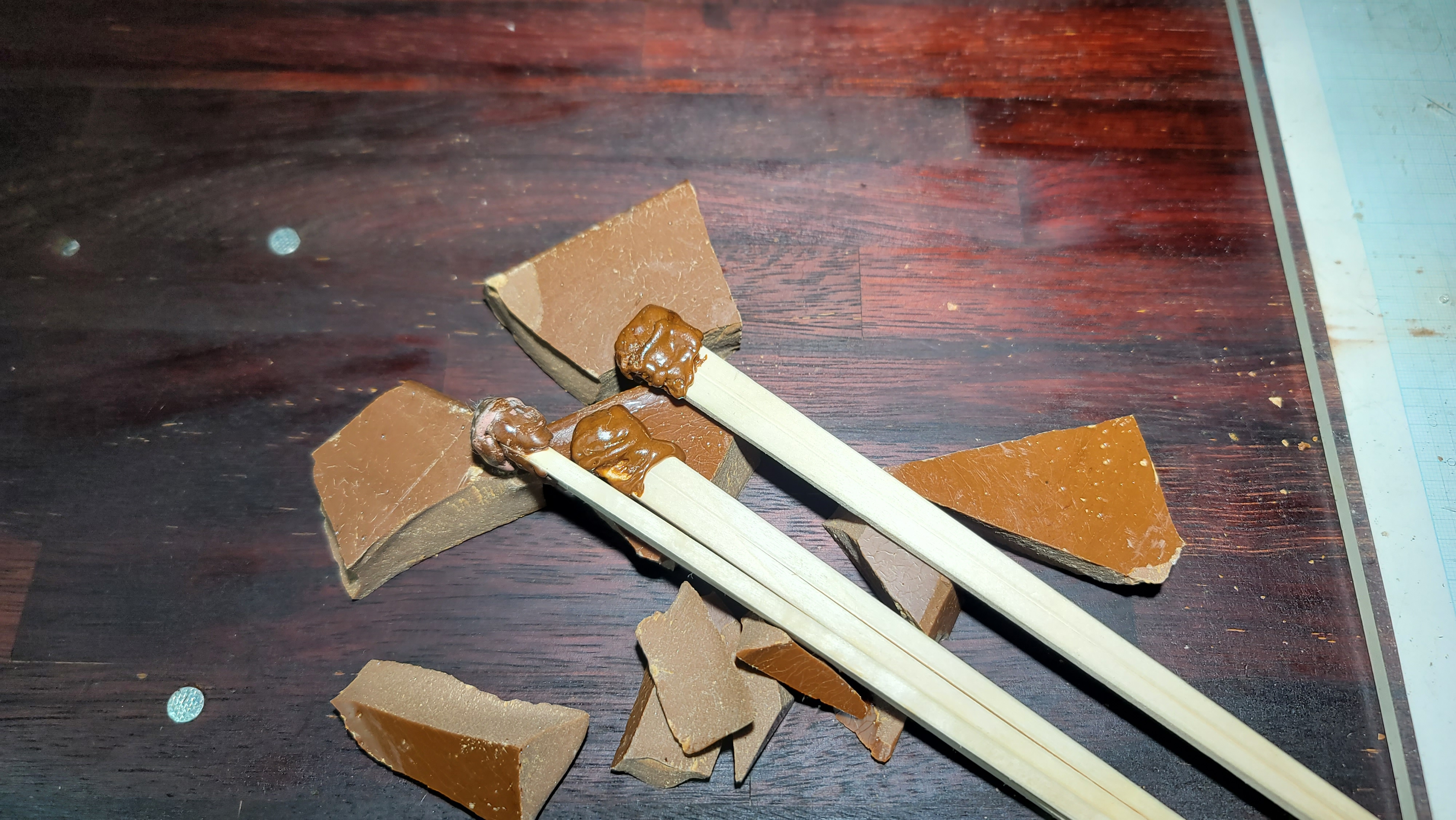 돕스틱 젓가락에 오팔 원석을 붙이는 것입니다.