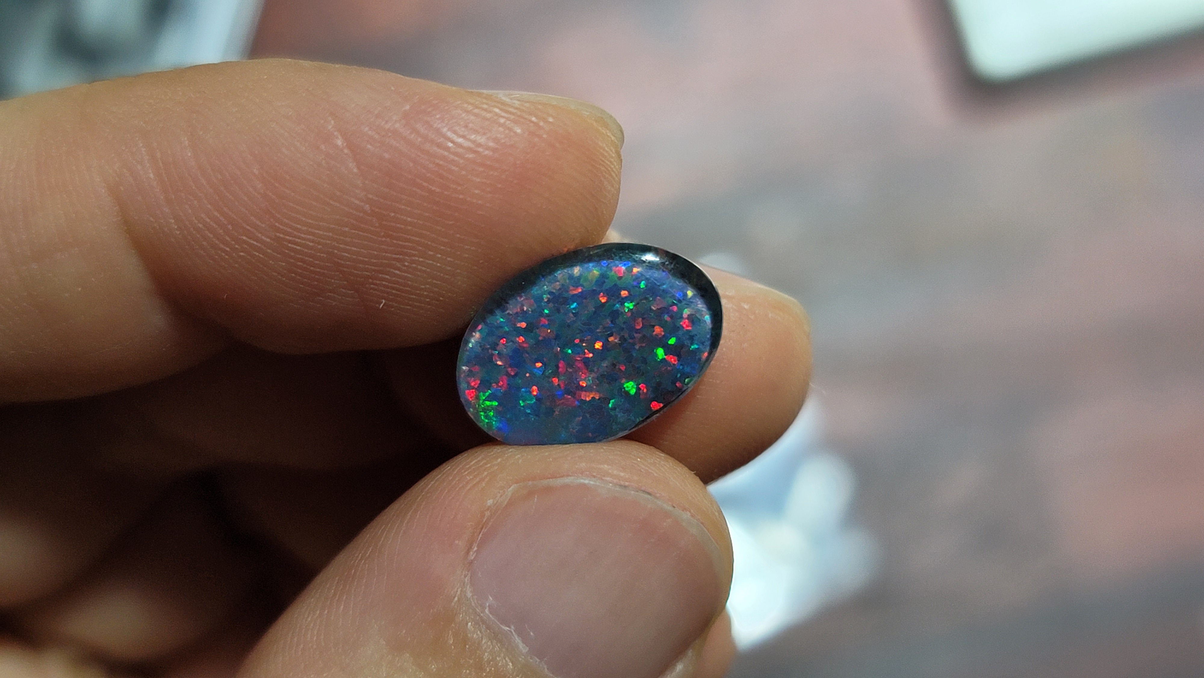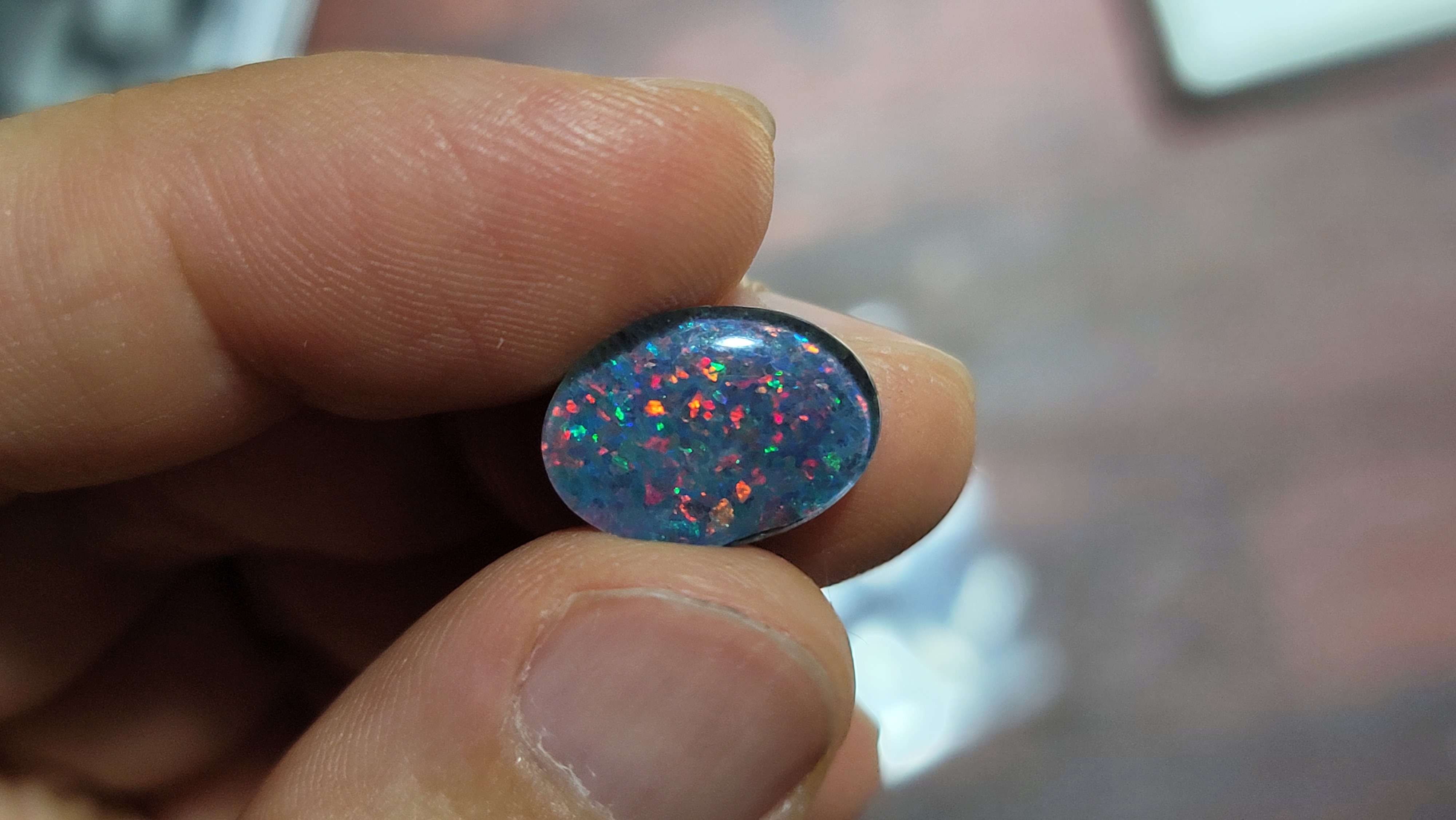 모자이크가 아닌, 하나의 오팔 박편을 접합한 트리플릿 오팔입니다.
